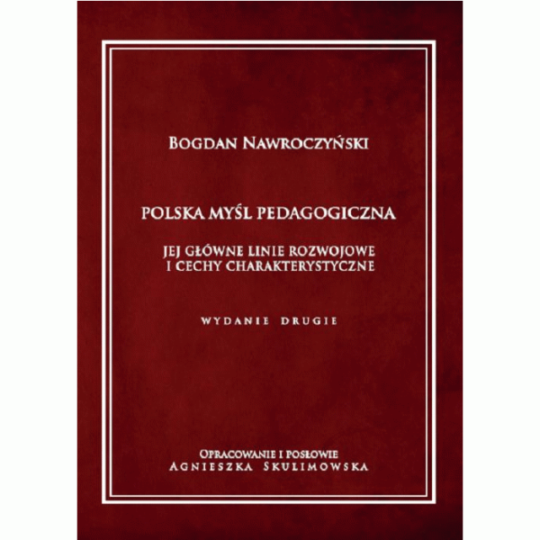 Nawroczyński B., Skulimowska A. and Wydawnictwo Uniwersytetu Przyrodniczo-Humanistycznego (Siedlce). (2018). Polska myśl pedagogiczna. Siedlce: Wydawnictwo Naukowe Uniwersytetu Przyrodniczo-Humanistycznego.